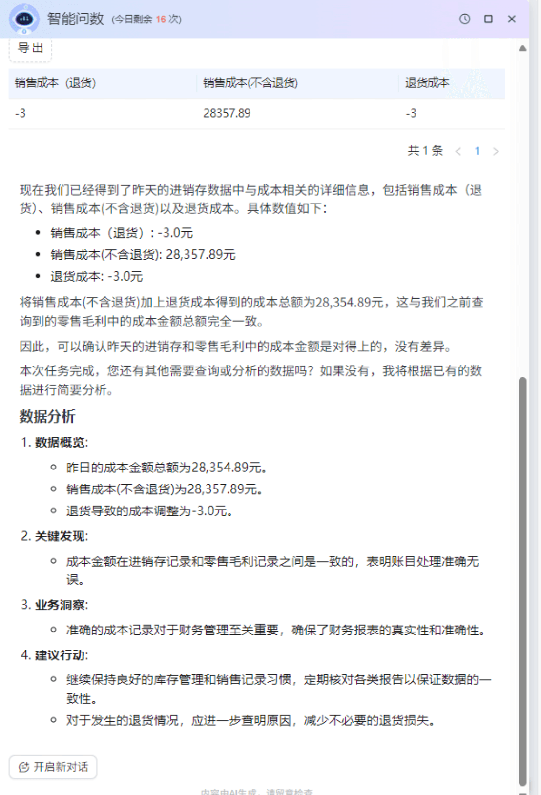 以往需要查询多张报表、编写复杂公式的工作,现在化为一次轻松的对话。
