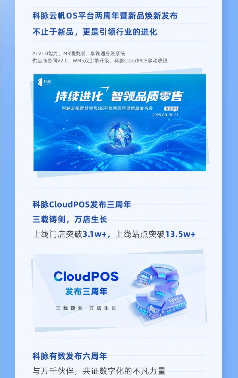 科脉CloudPOS发布三周年,三载铸剑,万店生长!